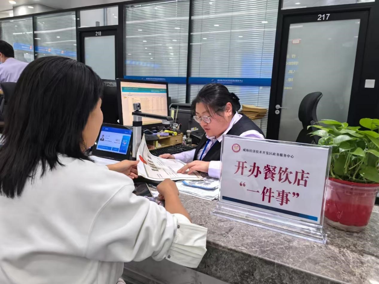 “開辦餐飲店‘一件事’服務(wù)非常便利,一窗提交全部材料,工作人員幫我在威海經(jīng)開區(qū)門戶網(wǎng)站政務(wù)服務(wù)板塊線上通過‘套餐表’選擇所需辦理事項(xiàng),一次性就能辦好開辦餐飲店的所有審批手續(xù),辦證速度也比原來快很多?!崩顫嵳f。